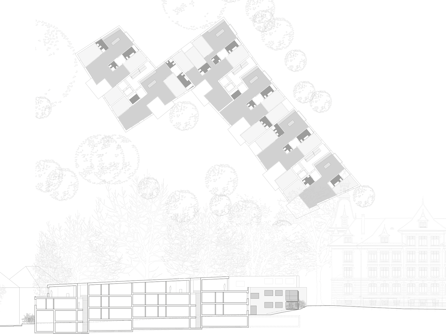 Residential development SchönbergWohnüberbauung Schönberg Location:Bitziusstrasse, Bern Client:Stadtbauten Bern Year: 2006 Assignment:competition 2nd prize